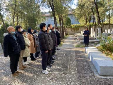 11月16日下午,jdb电子15名教师来到八宝山革命公墓党员干部政德教育基地瞻仰学习。