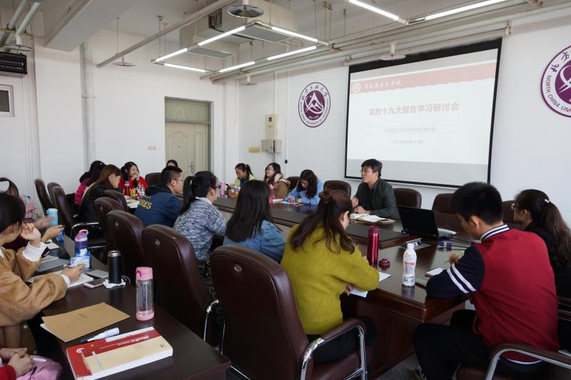 10月23日下午,jdb电子游戏官方网站研究生党支部组织召开党的十九大报告学习研讨会,党支部全体党员和积极分子参加了活动。