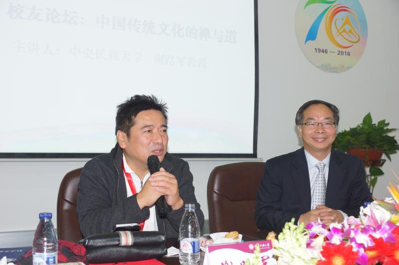 下午2:00,校友学术论坛开始,中国社会科学院孙伟平教授和中央民族大学谢路军教授分别就“创建当代中国价值观”和“中国传统文化中的禅与道”做了专题报告,为在场师生奉献了一场学术盛宴。