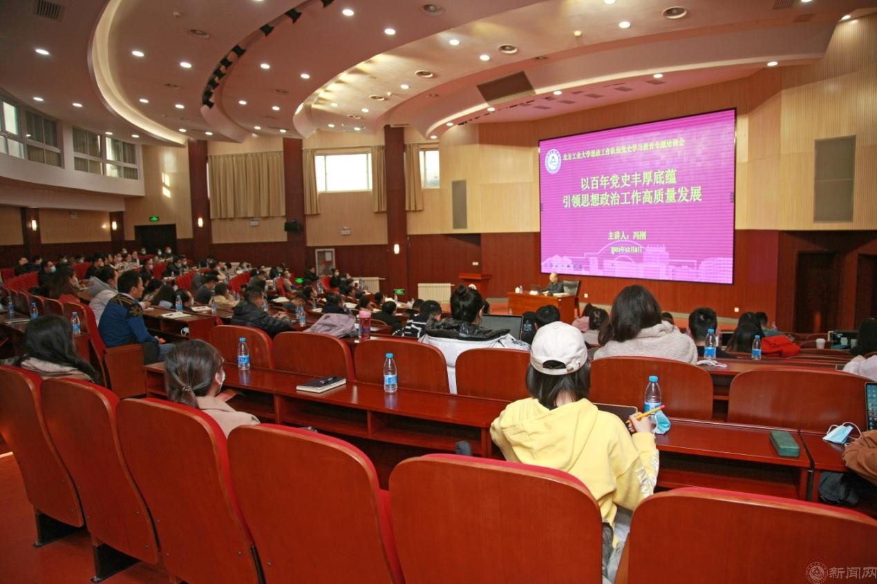在全国高校思想政治工作会议召开五周年之际,为进一步提升我校思想政治工作水平,学校于12月8日举办思政工作队伍党史学习教育专题培训会,邀请教育部思想政治工作司原司长、北京师范大学思想政治工作研究院院长冯刚教授作题为“以百年党史丰厚底蕴引领思想政治工作高质量发展”的主题报告。校党委副书记田红芳主持报告会,副校长王力出席报告会。