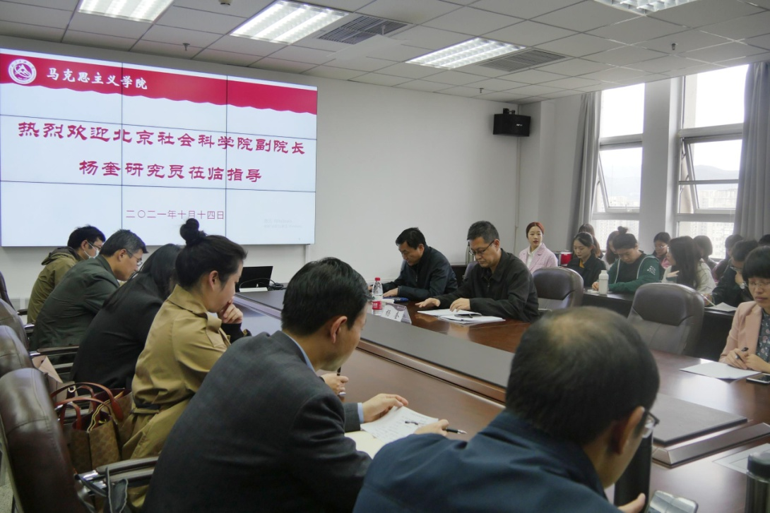10月14日下午,北京市社会科学院副院长、中国马克思主义哲学史学会常务理事、副秘书长杨奎应邀来jdb电子作了题为“不断提高用马克思主义中国化最新成果思考和解决问题的能力”的学术报告。报告由jdb电子游戏官方网站院长袁本文主持。