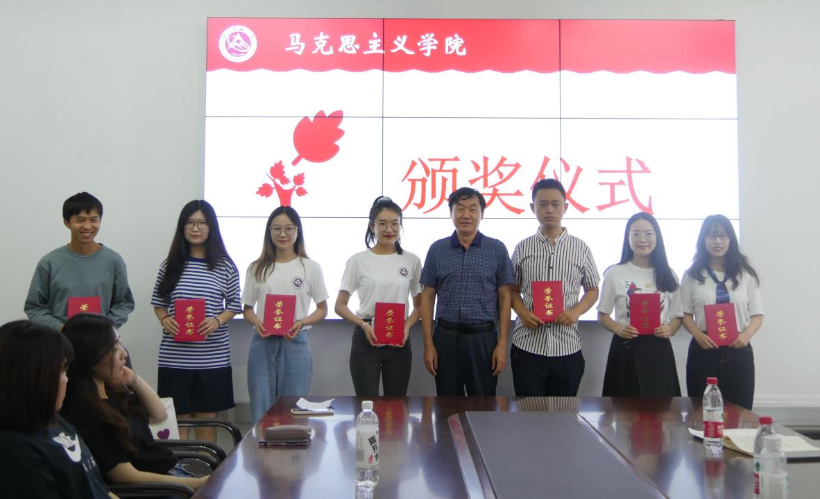 会上,周守高老师和张伟伟老师分别宣读了《jdb电子游戏官方网站2021年春季马列经典读书会表彰决定》、《jdb电子游戏官方网站马克思主义学2020-2021学年度第二学期表彰决定书》,对表现优异的24名同学分别给与了表彰颁奖。