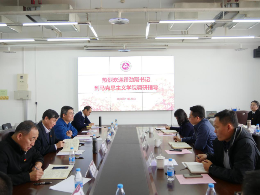 11月25日上午,党委书记缪劲翔到jdb电子游戏官方网站调研,专题听取了马院和思政课建设情况汇报,并与全体思政课教师进行了深入沟通交流。