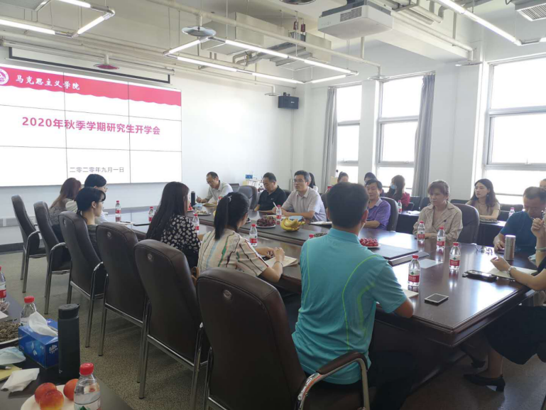 最后,院长袁本文对新学期总体部署和安排做了发言,对全体研究生提出两点要求:第一、勤学习,做到学有所成。新学期要结合自身实际梳理学业规划,认真准备18级的毕业论文中期答辩和19级的毕业论文开题答辩。第二、多读书,书山有路。新时代发展下,做为马院的学生更应该站在一定高度领略高境界,扎扎实实读原著、读经典,用不同视角分析解读马克思主义思想,以对此形成高远、深刻、全面的认识,并强调同学们要认真学习《马恩全集》,内化于心,外化于行,坚持马克思主义真理,切实应用到实践当中,做到真懂、真学、真信、真用。