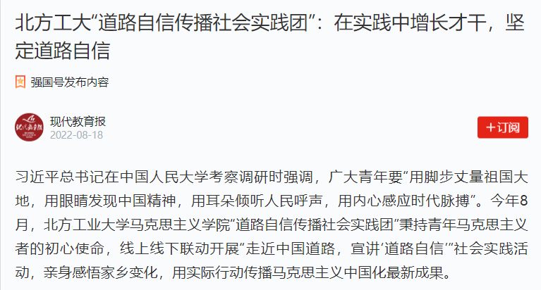 日前,“学习强国”平台对jdb电子“道路自信传播社会实践团”暑期社会实践活动做了专篇报道。