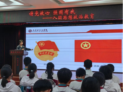 张华超详细讲解了团章、团史和团员的权利义务,向同学们介绍了入团的基本流程和基本条件,使他们对团组织及入团要求有了更清晰的认识。张震围绕青年团员的责任担当并结合初中生的特点,勉励大家要加强文化课学习,将个人理想与国家命运紧密相连,通过坚韧不拔的奋斗精神实现个人价值。