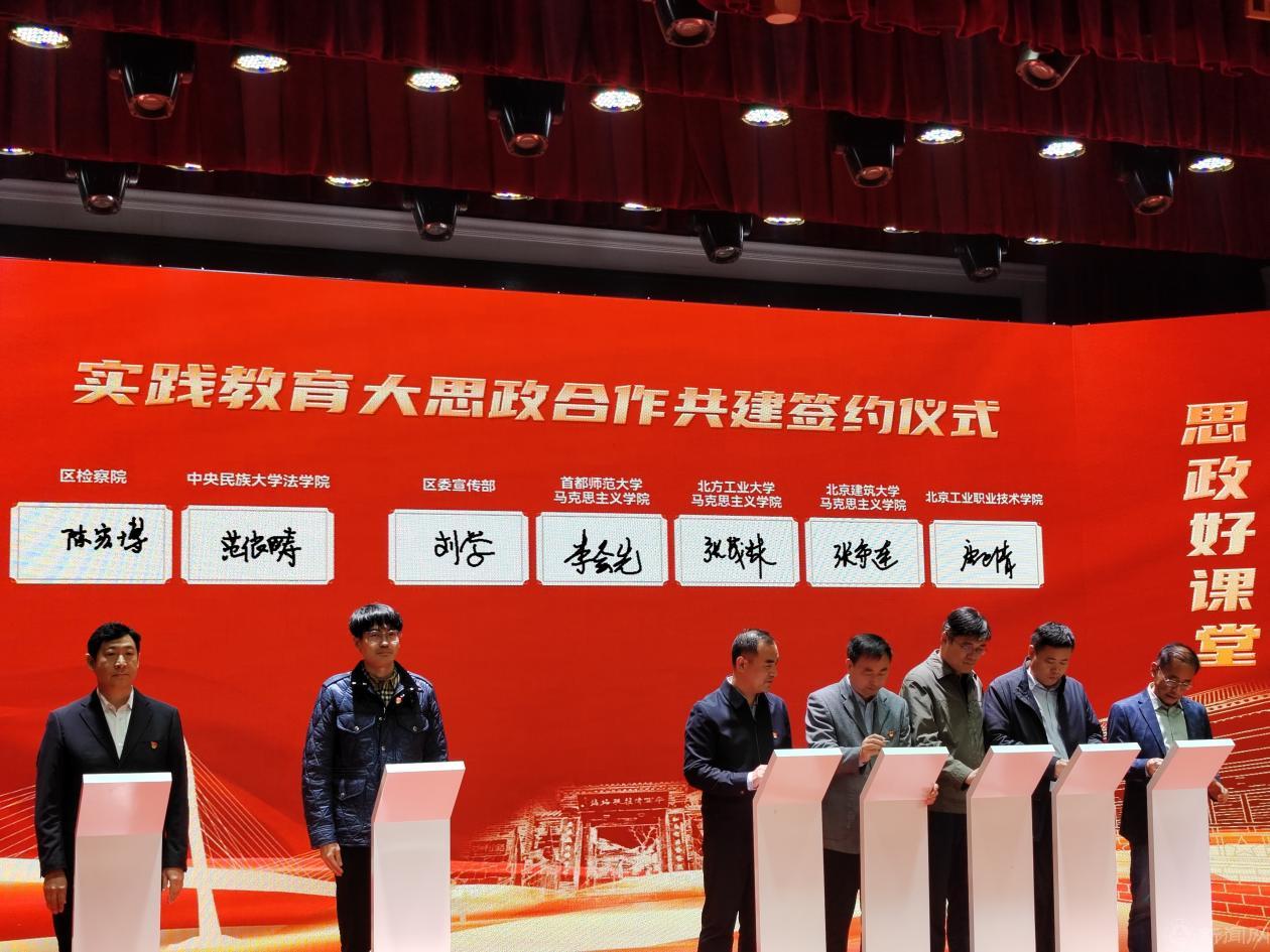 10月25日,“诗画门头沟·思政好课堂”暨全域实践教育大思政体系建设推进会在门头沟区妙峰山镇水峪嘴村古道剧场举办。会上,我校jdb电子游戏官方网站与门头沟区委宣传部签署了实践教育大思政合作共建协议,共同开发实践教育思政课,切实将思政小课堂与社会大课堂结合起来,构建协同育人大格局。