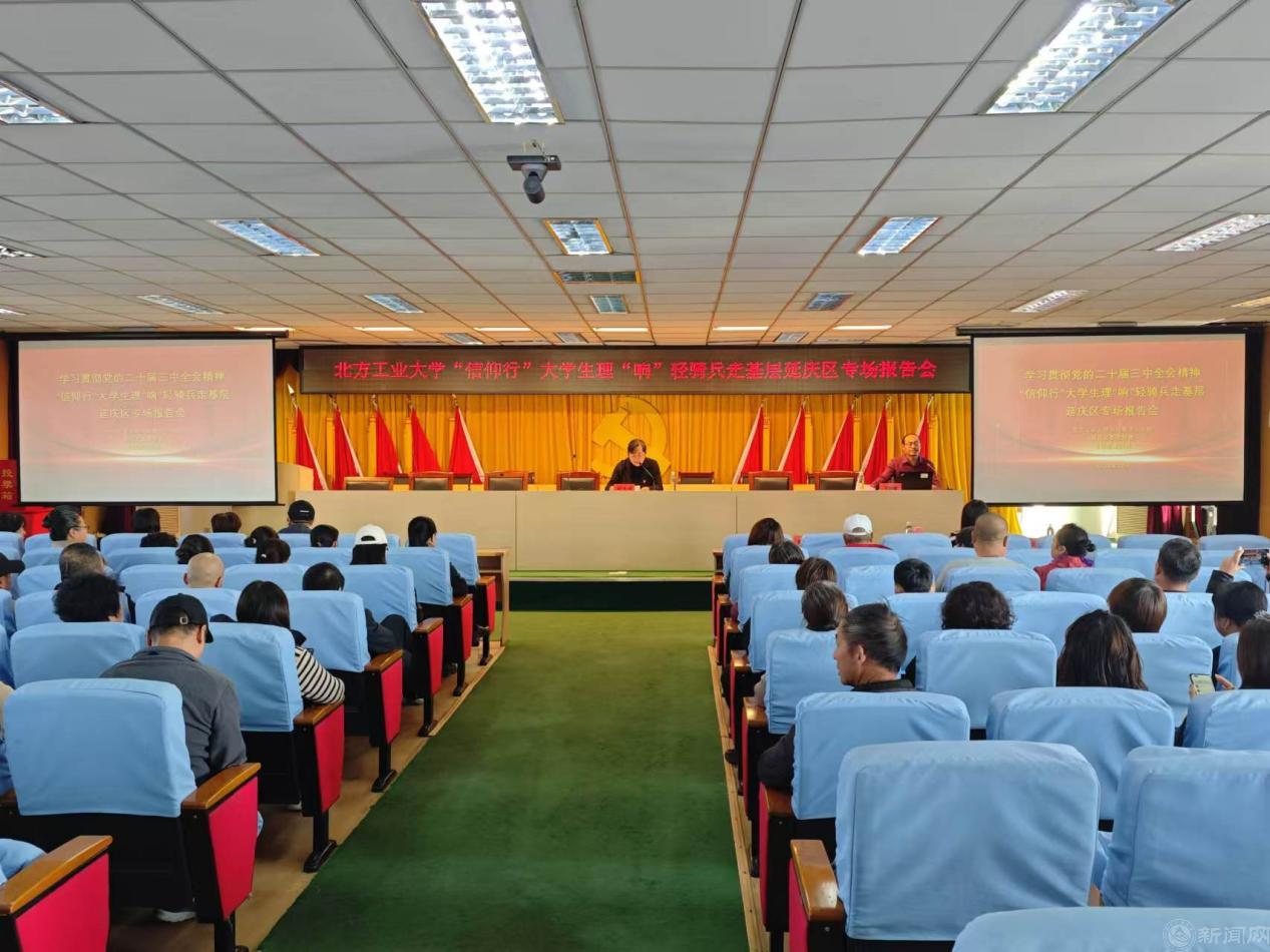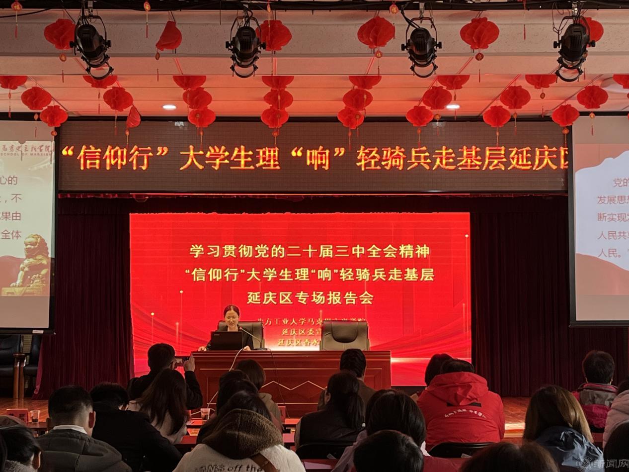 为进一步凝聚思想共识、筑牢理论根基,推动党的二十届三中全会精神紧贴实际、深入人心,10月24日,jdb电子游戏官方网站师生宣讲团一行赴延庆区,开展“信仰行”大学生理“响”轻骑兵走基层活动。师生们分别来到延庆镇、旧县镇和香水园街道,开展党的二十届三中全会精神专题宣讲。二百余名党员代表、群众代表参加报告会。宣讲活动受到当地党员群众的普遍好评。