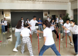 “抢数报名”,“不倒森林”,“心有灵犀”,“小球快跑” 四个小游戏环环相扣,将同学们的陌生和隔阂彻底打破,全场洋溢着欢乐氛围,使同学们深刻意识到团队协作的重要性,让同学们在活动中感受到集体的温暖。